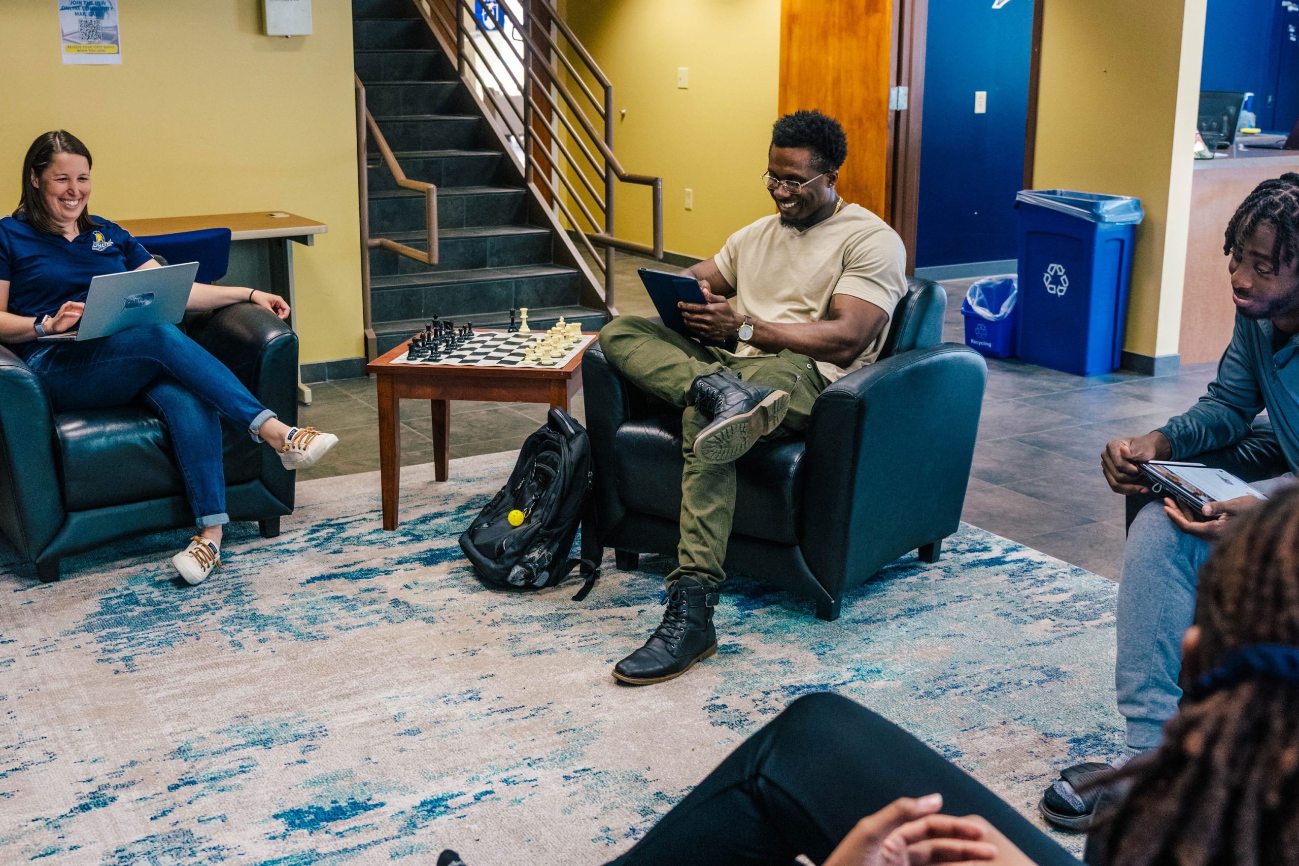 At UNCG, MAS’s suite of offices and gathering rooms serve as military-affiliated students’ go-to source for information to help them meet their needs, whether they are academic or personal. Home to an active chapter of the Student Veterans of America, it’s a popular spot for veterans to relax between classes, study, and connect with peers.