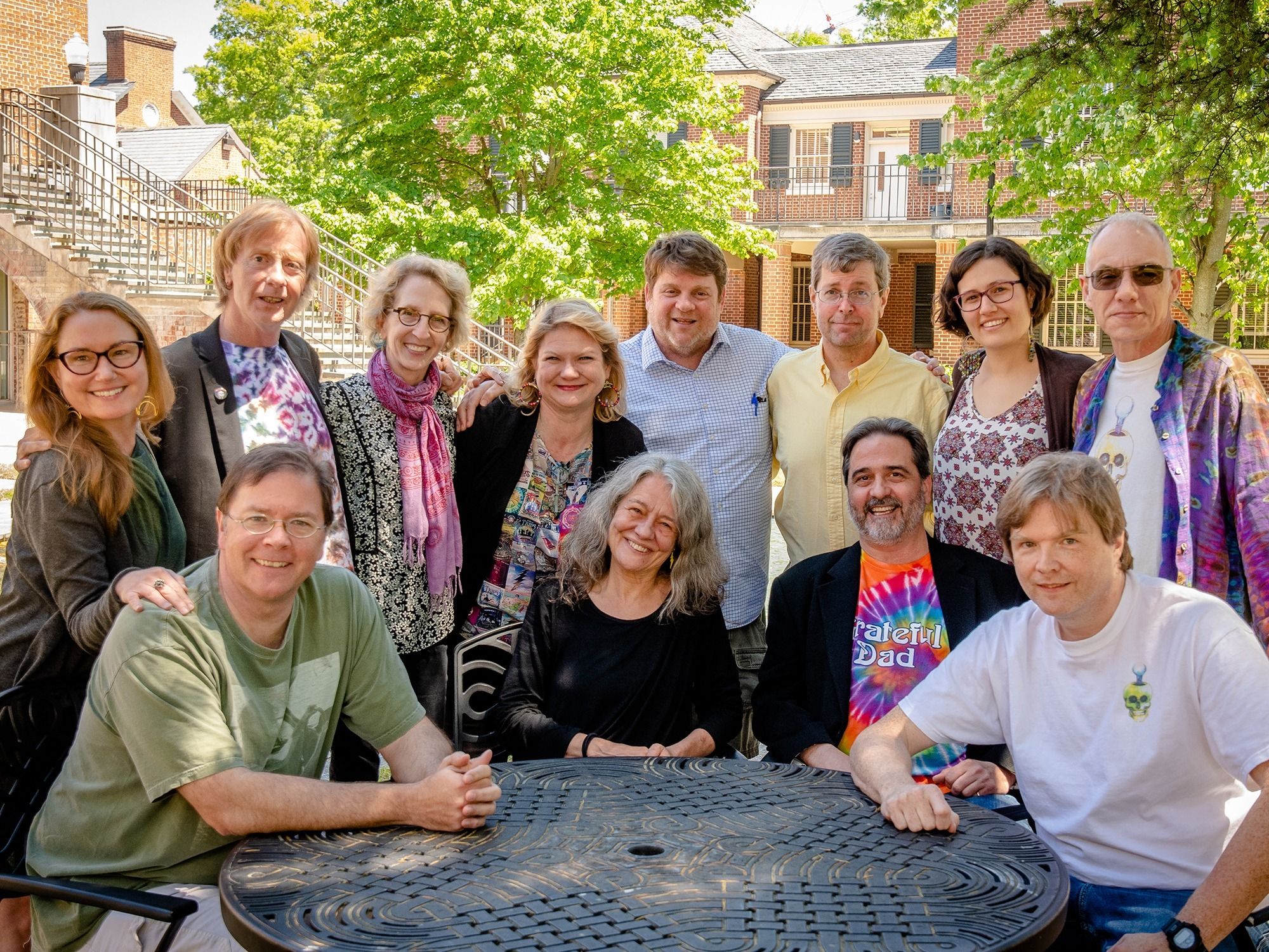 In the spring, three decades of work came home for Adams at the “UNCG Dead Scholars Unite!” symposium, which she co-organized with Assistant Professor Justin Harmon and alumna Kristen Huff as part of the University’s “The 60s: Exploring the Limits” year-long series of events. The symposium brought together Dead scholars and Deadheads, and reunited Adams with her summer of ’89 students, marking the 30th anniversary of what they now fondly refer to as “The Class” (photos from 1989 at top of article and from 2019 below).