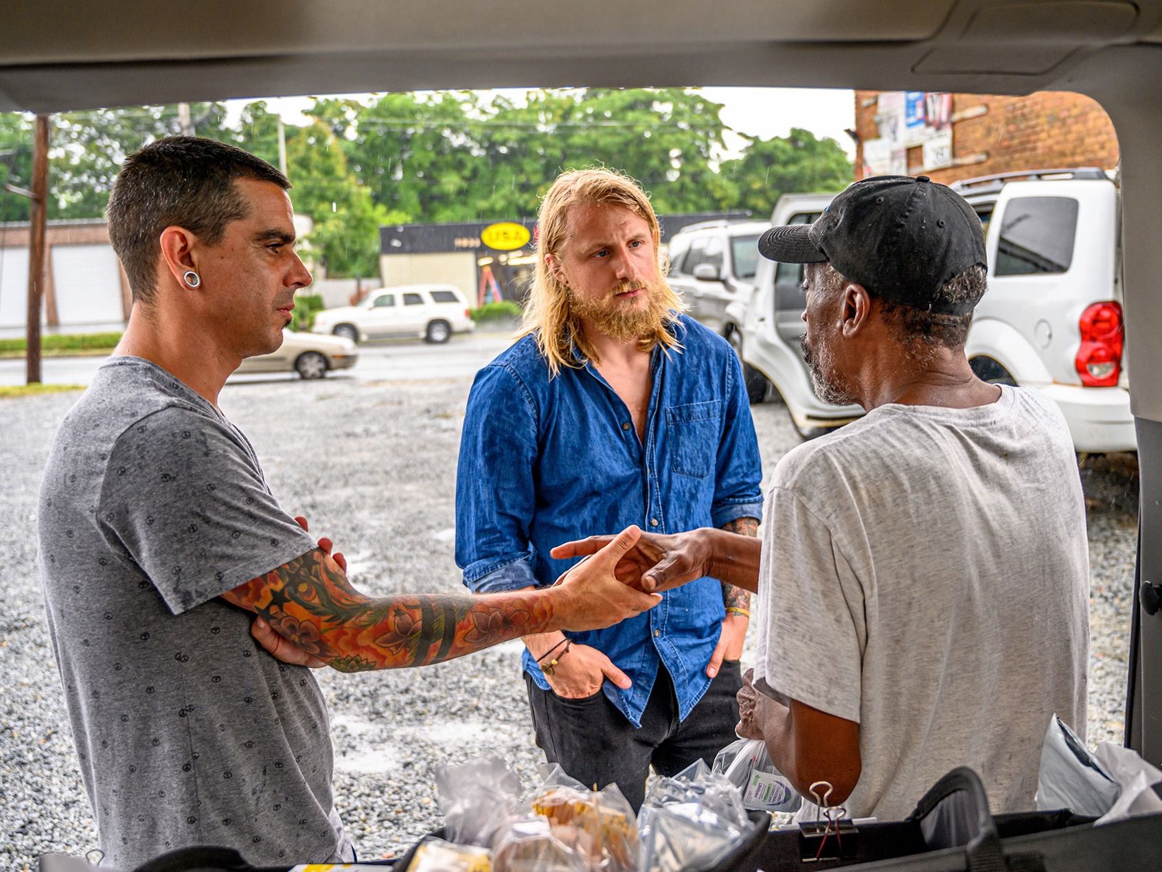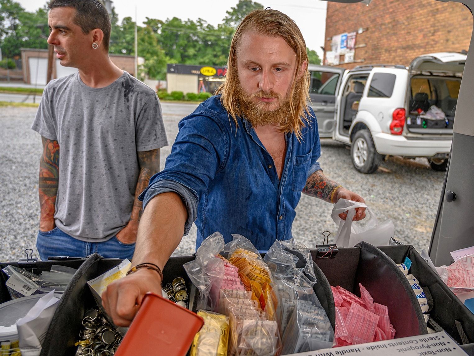 A High Point gas station and a thrift store parking lot have become regular sites. “We go set up in their parking lot, with their permission, and give out supplies,” Poole says.