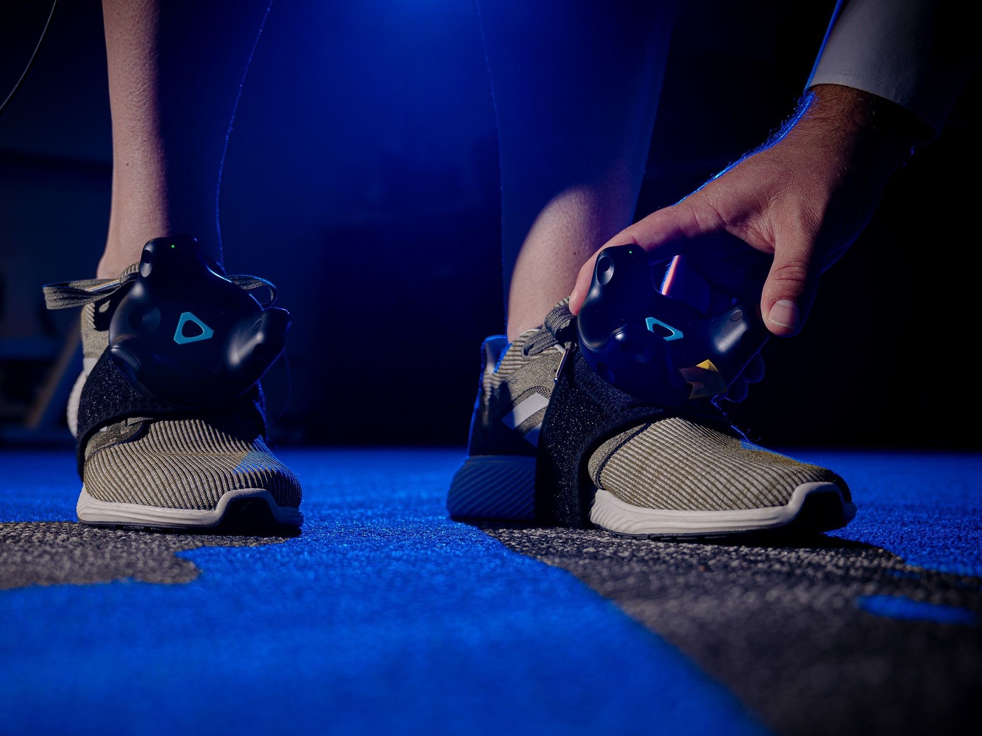 In the VEAR Lab, subjects – wearing goggle-like VR headsets or watching a video monitor – are told to match their steps to those of a virtual avatar as they walk on a treadmill.