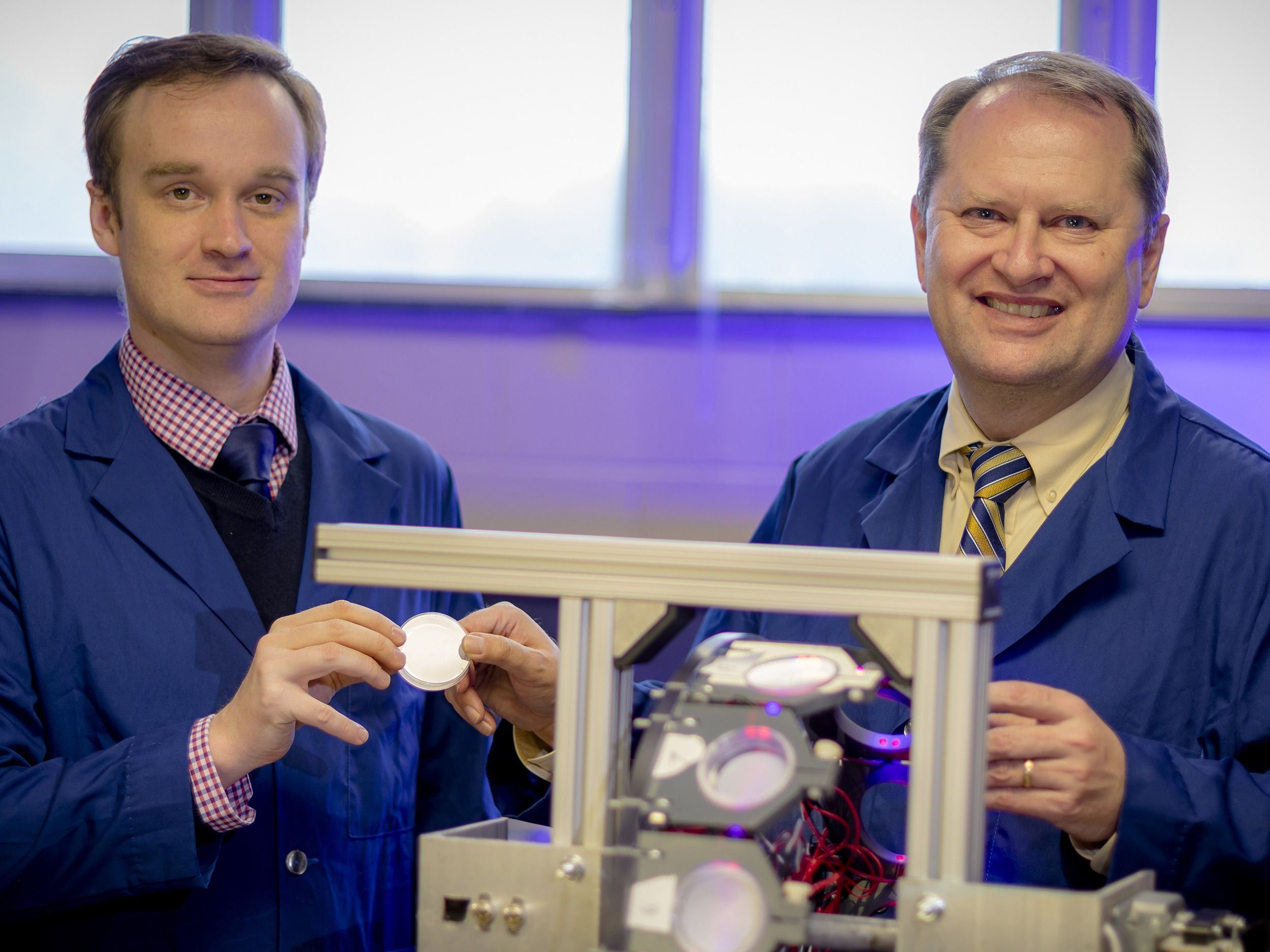 Above left: samples from one of Kiss’ spaceflight experiments are processed at a NASA labAbove center and right: postdoctoral researcher Josh Vandenbrink and Kiss (right) load samples onto a clinostat, a device that simulates microgravity and helps them analyze results from the experiments. See more photos on UNCG Research Flickr.