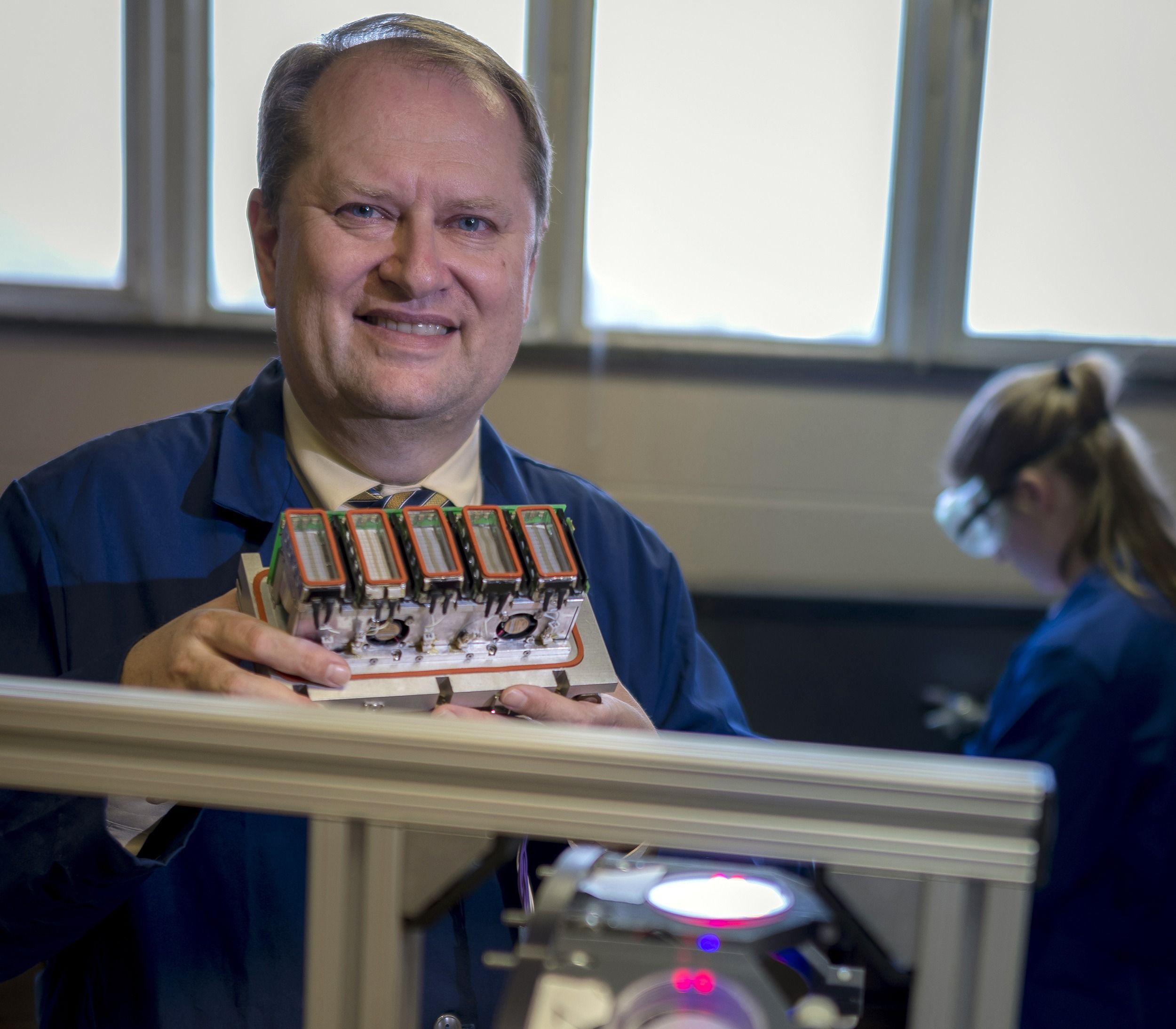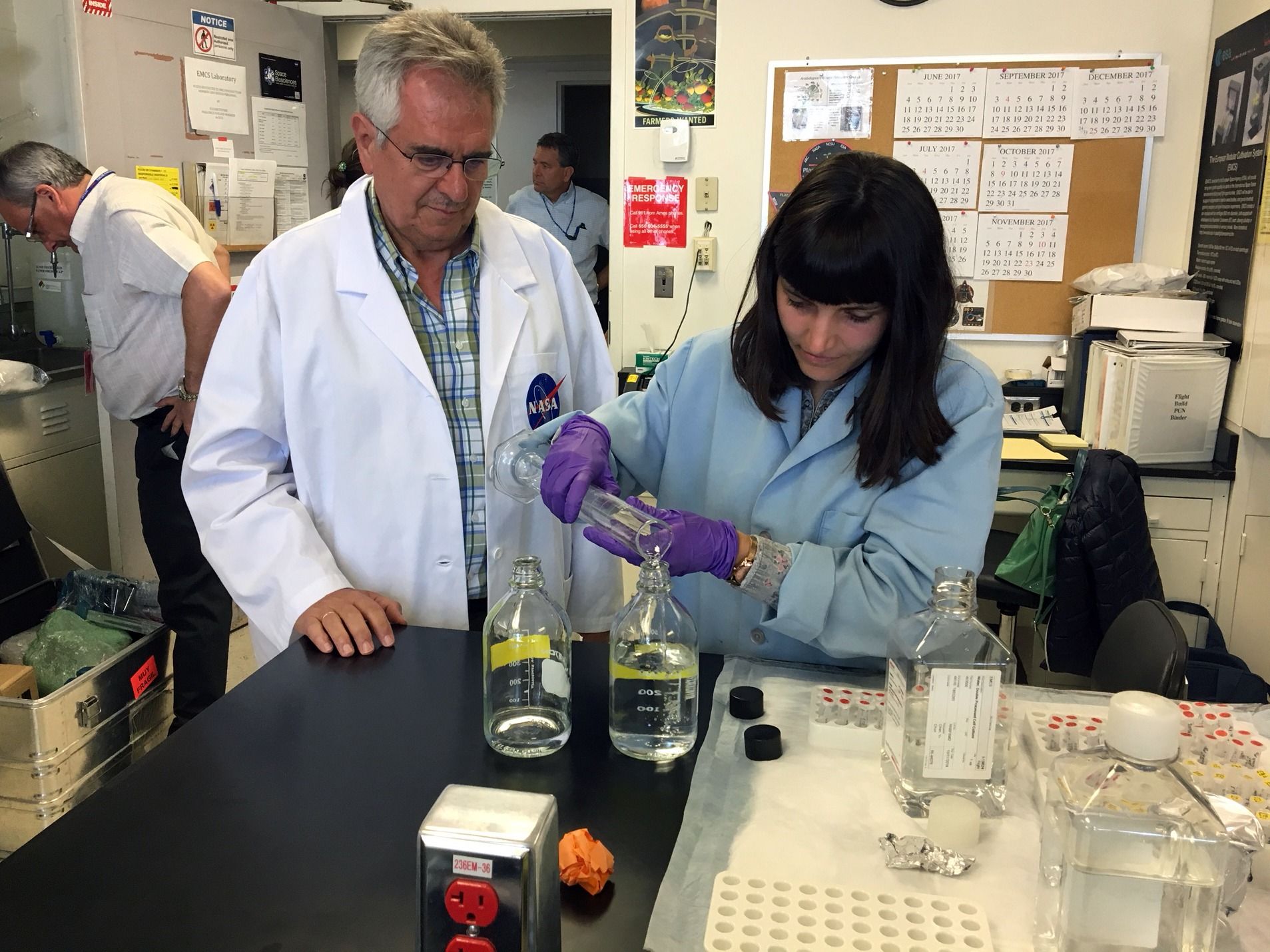 Above, Kiss works with the science and engineering team at NASA Ames Research Center prior to the 2017 launch.